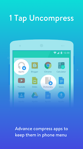 • Increase & Save Phone Memory: It's primary feature of Compression gives you the Power of Increasing Memory and also to Install 3 Times more Apps on your phone