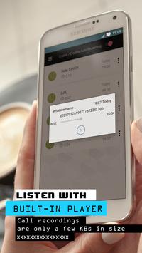 Enable and disable automatic phone call recording with one tap. Saved auto call recordings only take up a few KBs of space. Listen to recordings with in-app audio player. You can upload to ol' Cloud Storage too with your Google Play Services Account.