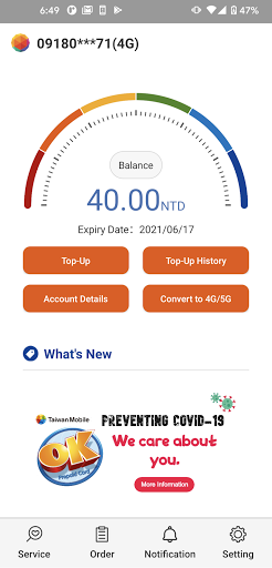 Tajwan Mobile OK OK Prepaid App jest bezpłatny i serwuje Cię w ciągu 24 godzin!