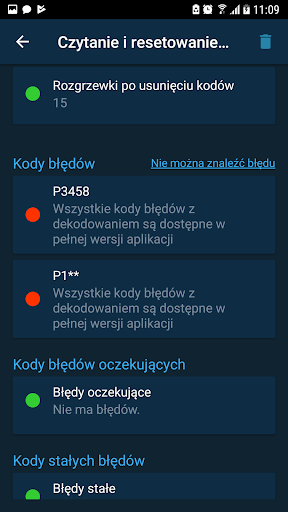 - wyszukiwanie opisów kodów usterek i możliwych rozwiązań w Internecie przez kliknięcie kodu;