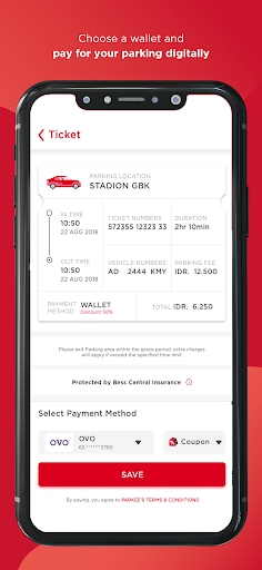 - Natychmiast zapłacić parking za pomocą preferowanej metody płatności.Zintegrowaliśmy się z wiodącymi płatnościami cyfrowymi, takimi jak Dana, Gopay i Tcash.
