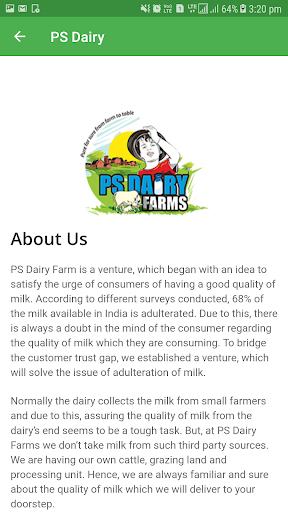 P.S. Dairy farm has committed to supply fresh raw milk directly from the farm to our esteemed customers at their door step. It is a venture based on the concept of farm to table dairy. we provide pure, natural and healthy milk to your door step within few hours of milking at our own farm.