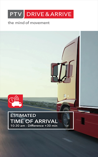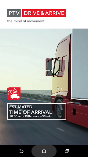 The PTV Driver App is a complementary tool for the calculation of road transport arrival time. The app serves as a demonstrator and testing tool for customers with the PTV Drive&Arrive cloud service. On the basis of your shipment's position, which is sent by the app, PTV Drive&Arrive computes the exact expected arrival time of your shipment and automatically informs all registered participants.