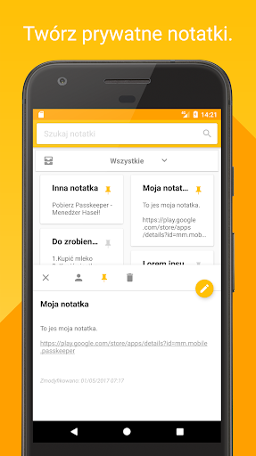 - łatwo twórz prywatne notatki odseparowane od haseł.
