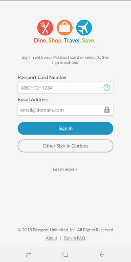 Uwaga: Aplikacja Mobile Passport wymaga, aby zalogować się za pomocą bieżącego członkostwa paszportowego.Musisz mieć kartę wyświetlającą logo Passport Dining, Passport Corporate Corporate lub Passport Lifestyle Logo (lub być zarejestrowanym członkiem karty mobilnej) w kolejności odkupić oferty wymienione w tej aplikacji.