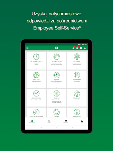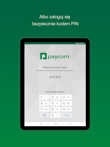 Z myślą o pracownikach, którzy już obecnie wykorzystują technologie HR Paycom w swojej pracy, aplikacja Paycom udostępnia możliwości płynące z technologii Employee Self-Service na Twoim urządzeniu mobilnym. Należy pamiętać, że niektóre funkcje Employee Self-Service muszą zostać aktywowane przez administratora Paycom Twojego przedsiębiorstwa. W przypadku pytań dotyczących tych funkcji, skontaktuj się ze swoim Działem HR.
