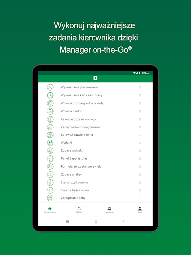 Ponieważ praca nie kończy się w momencie gdy kierownik odchodzi od biurka, Manager on-the-Go pomaga kierownikom najlepiej wykorzystać ich dzień pracy. To mobilne narzędzie pozwala kierownikom i przełożonym realizować podstawowe zadania kierownika dotyczące ich pracowników z dowolnego miejsca, w tym zatwierdzać przepracowane godziny, wnioski o urlop oraz zwroty wydatków, przeglądać harmonogramy członków zespołu i więcej.