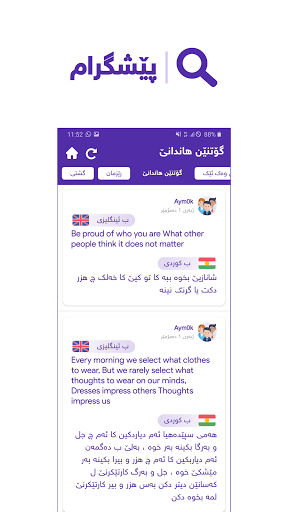نۆتیفیکەیشن تێدا هەنە بۆ فێربوونا پەیڤان رۆژانە دێ هێنە هنارتن بۆ خەلکێ .