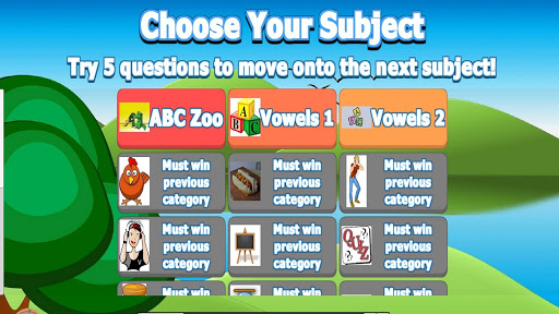 There are three unlocked to start, work your way through answering all the questions to unlock the next level. It starts with phonics, vowels and works up to tenses and syllables.