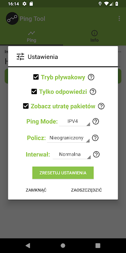Zmień tryb zliczania pingów;