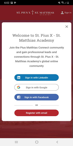 Pius Matthias Connect umożliwia zarówno ponowne połączenie ze starymi kolegami z klasy, jak i umożliwiając wykorzystanie zaufanego środowiska Academy St. Pius X - Matthias, aby rozszerzyć swoją sieć profesjonalną.