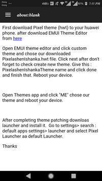 - Pixel Launcher for EMUI (in-build) - Pixel Icon pack for EMUI (in-build) - Pixel Status Bar icons (such as signal icons, wifi icons) (in-build) - Font Pack (in-build) - No root need Please first read installation guide on App.