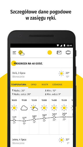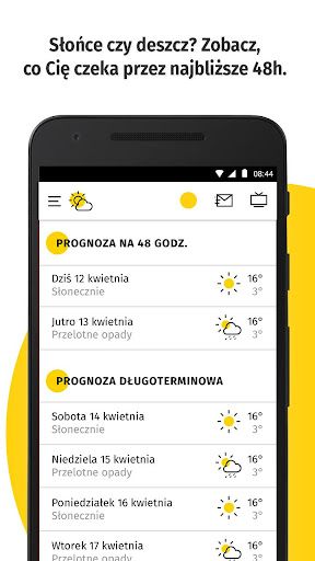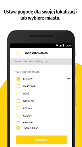 Aplikacja zapamiętuje twoje ulubione lokalizacje i podaje najdokładniejszą godzinową prognozę pogody na dziś, a także prognozę dla najbliższych 14 dni! Wybrane miejsca możesz zdefiniować już przy starcie aplikacji, wybierając zarówno miasta jak i ich dzielnice. Dużym plusem aplikacji jest również fakt, że dostarcza prognozę pogody (długoterminową i godzinową) dla mniejszych miejscowości, które trudno znaleźć w innych aplikacjach.
