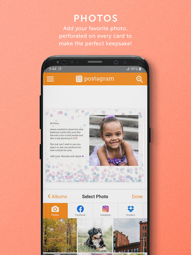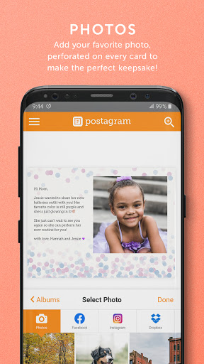 Użyj zdjęć z Instagram, Facebook i Twojej galerii zdjęć. Nowe projekty kart zmienią się sezonowo. Dostosuj kolory, aby pasowały do Twojego stylu. Wyślij pocztówki zdjęć za jedyne 2 $. (Cena obejmuje drukowanie i dostawa do dowolnego miejsca w USA)