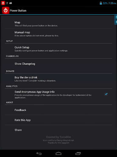 Aplikacja naśladuje swoją Przycisk zasilania dla łatwego dostępu na ekranie. Można ustawić widżet, pływające okno, skróty lub zgłoszenie (miodu powyżej tylko) dla wyłączyć obracanie ekranu i otwierając menu zasilania.