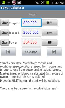 This calculator application can calculate Power from torque and rotational speed, such as an engine and a motor.