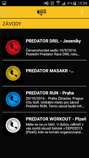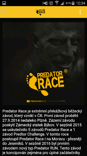 Základní informace, rozšířené informace, to vše získáš s naší aplikací Predator Race! Kde a kdy bude závod.