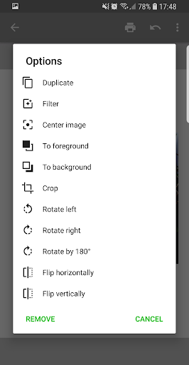 Celem tej aplikacji jest dopasowanie zdjęć do drukowania.Instalując aplikację, nowa ikona pojawi się w menu "Udostępnij" swojej ulubionej aplikacji Galeria.Następnie możesz zmienić rozmiar i ponownie położyć obraz na symulowanym papierze przed drukowaniem.