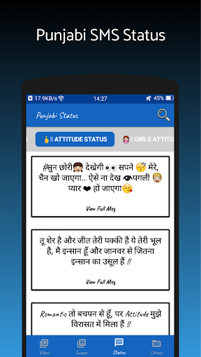 Punjabi Video Status for Whatsapp app serves a variety of small videos, which is satisfactory to publish on WhatsApp directly. Punjabi Video Status for Whatsapp app provides you following WhatsApp video, video status, Lyrical video and story videos in minimum realistic size and best quality. WhatsApp has made it agreed easy to freshen your vibes by sharing photos/videos on WhatsApp Status. Sharing photos is simple but making a video of your feelings or the tune you're humming is difficult as hell.
