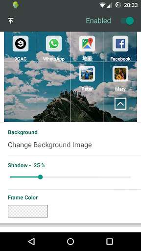 Układ z niektórymi spersonalizowanymi obrazami: Możesz wybrać obraz z galerii telefonu lub wybrać obraz z Obrazy Stock Galeria aplikacji. Możesz ustawić uchwyt obrazu, a także dostosowując procent cienia.