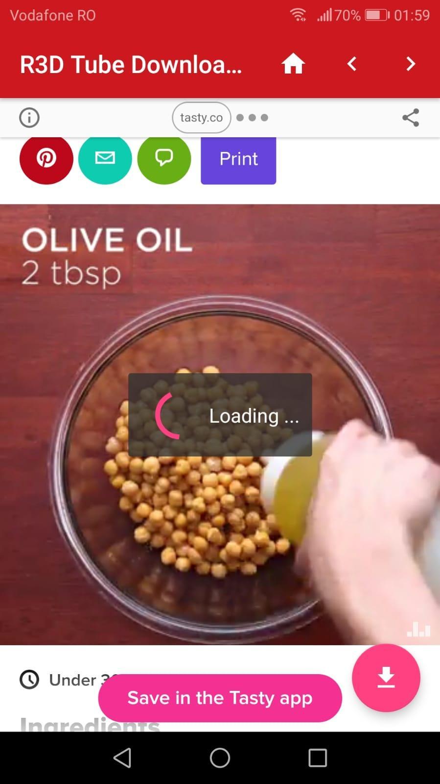 2. Play the video you want to download and click on the download button integrated within the "R3D Tube Downloader" App.