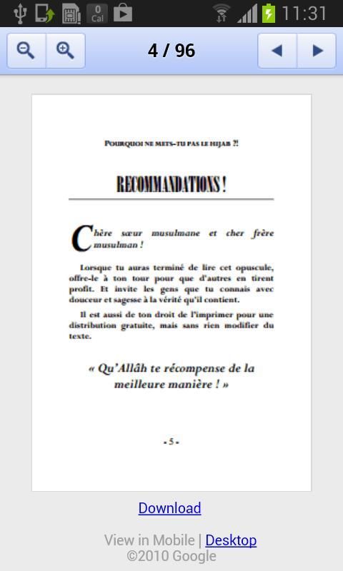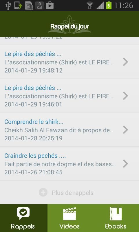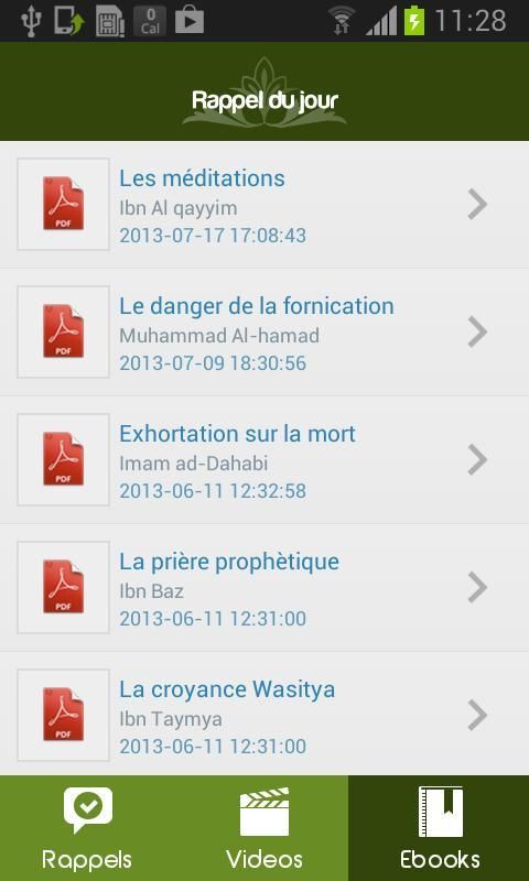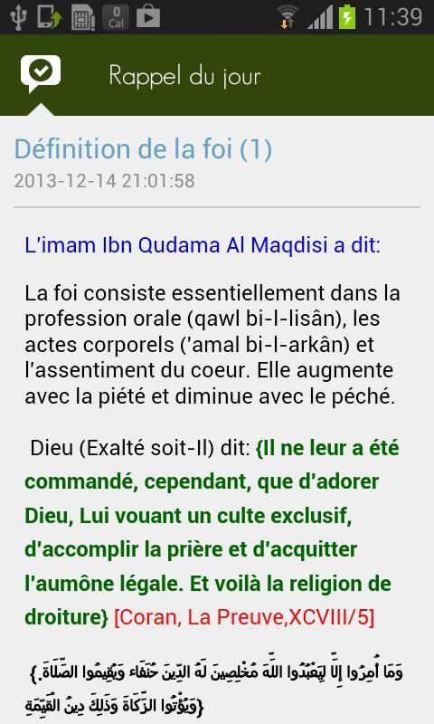 The official application site rappeldujour, receive daily reminders on your mobile wherever you are and enjoy our extensive library eBook available (video Islam, Quran, ebook, hadith, etc ...)