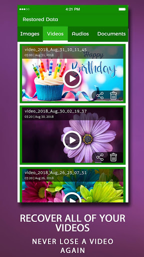 Our latest recover deleted photos - recover deleted files app, let you scan for your photo recovery of deleted photos to get you picture recovery easily. You can recover deleted videos with this videos recovery app for deleted video.