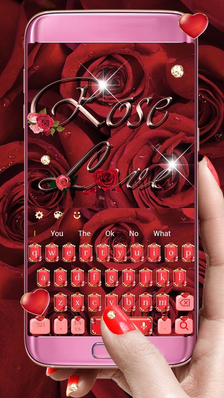 Diamond red rose theme for keyboard with red roses flower, rose love, and romantic diamond heart free for you . Get red rose keyboard theme for your stylish love android keyboard free.