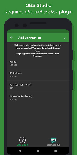 Obs Studio: Ta aplikacja wymaga systemu Obs Studio w wersji 25.0 lub powyżej oraz wtyczkę WebSocket WebSocket WebSocket Wersja w wersji 4.8.0 lub powyżej zainstalowany na komputerze, który chcesz sterować. (Oba są wolne, otwarte źródło i obsługa systemu Windows, Mac i Linux!)