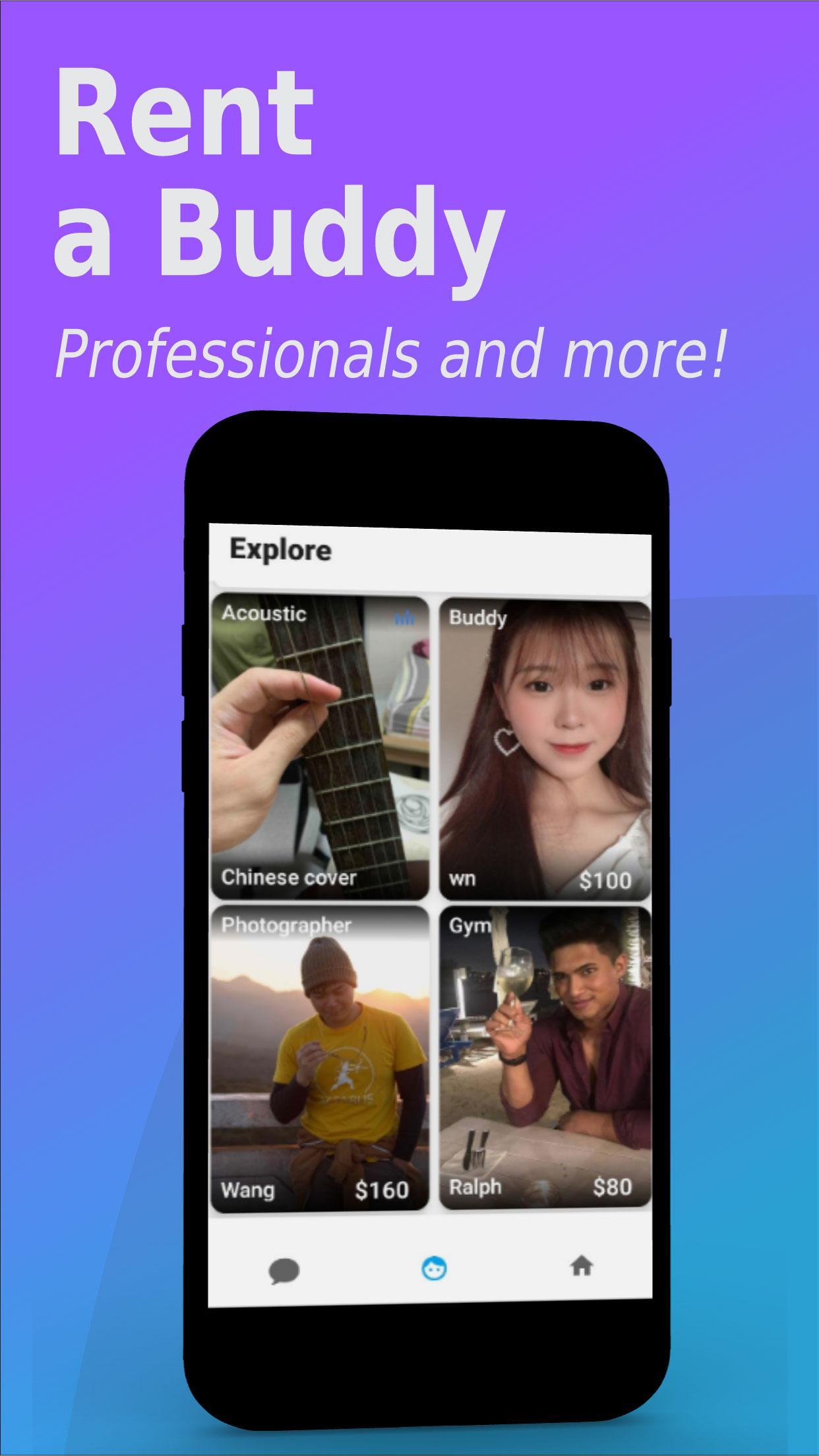 RentB also allows you to rent a buddy or a live streamer in Singapore. You can rent a local buddy to hang out with, go to a movie or restaurant with, or someone to go with you to a party or event. Rent a buddy to teach you a new skill or hobby, or to show you around an unfamiliar town. RentB is strictly a platonic Friendship app. RentB is NOT a dating app, and NOT an Escort agency. Services on RentB are strictly for FRIENDSHIP purposes only or any professional activities such as music recording or photographing.