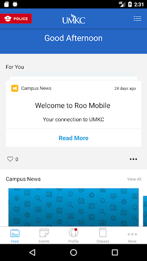 Roo Mobile delivers relevant, timely information to the student, improving the student experience and deepening campus engagement. Stay connected with campus news, events, and more.