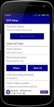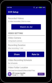 SVR works in hidden background so video record will not show on screen but it records video in spy way.