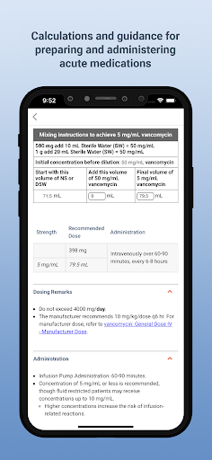 SafeDose zapewnia instrukcje miksowania, dawkowanie i podawanie leków na jednej stronie, możliwej do działania.Wybierz wagę i potrzeby kliniczne pacjenta, a natychmiast zobacz dawkę w MG, objętość w ML, rozcieńczenie, informacje o dostawie i niebezpieczeństwa.