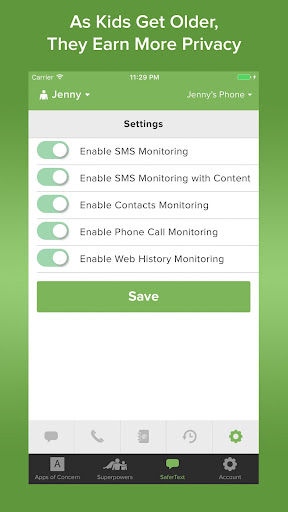 Parental control and monitoring app SaferKid provides end-to-end parenting support from when your child first gets a device through adulthood. It's the most comprehensive parenting solution on the market and the only one that anticipates danger and warns you BEFORE bad things happen.