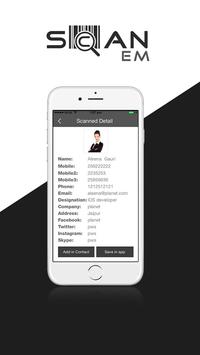 Scan Em is an App for making your contact sharing process very simple. Just add your contact details, which you would like to share with people and App will create unique QR Code for your contact which you can share to anybody for transfering your contact to his mobile. Other person will just scan your QR code and he will have all your contact information.