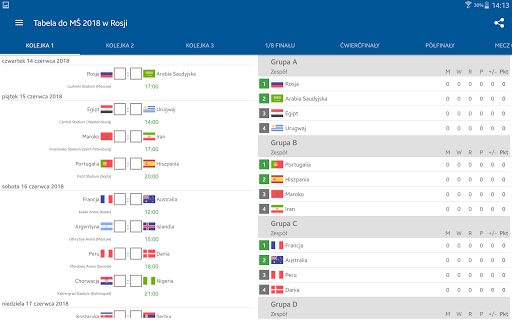 Aplikacja pomoże Ci szybko określić pozycję turniejową ulubionego zespołu podczas Mistrzostwa Świata w Piłce Nożnej 2018.