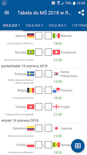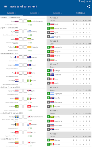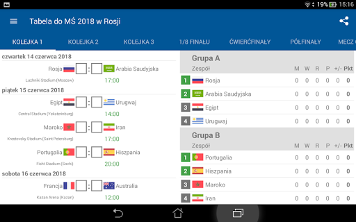 Śledź mecze i prowadzi własną tabelę Mistrzostwa Świata 2018.