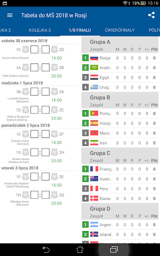 Musisz tylko wypełnić swoje własne wyniki meczów, a sama aplikacja buduje wszystkie tabele grupy i oblicza, które zespoły wejdą do play-off.
