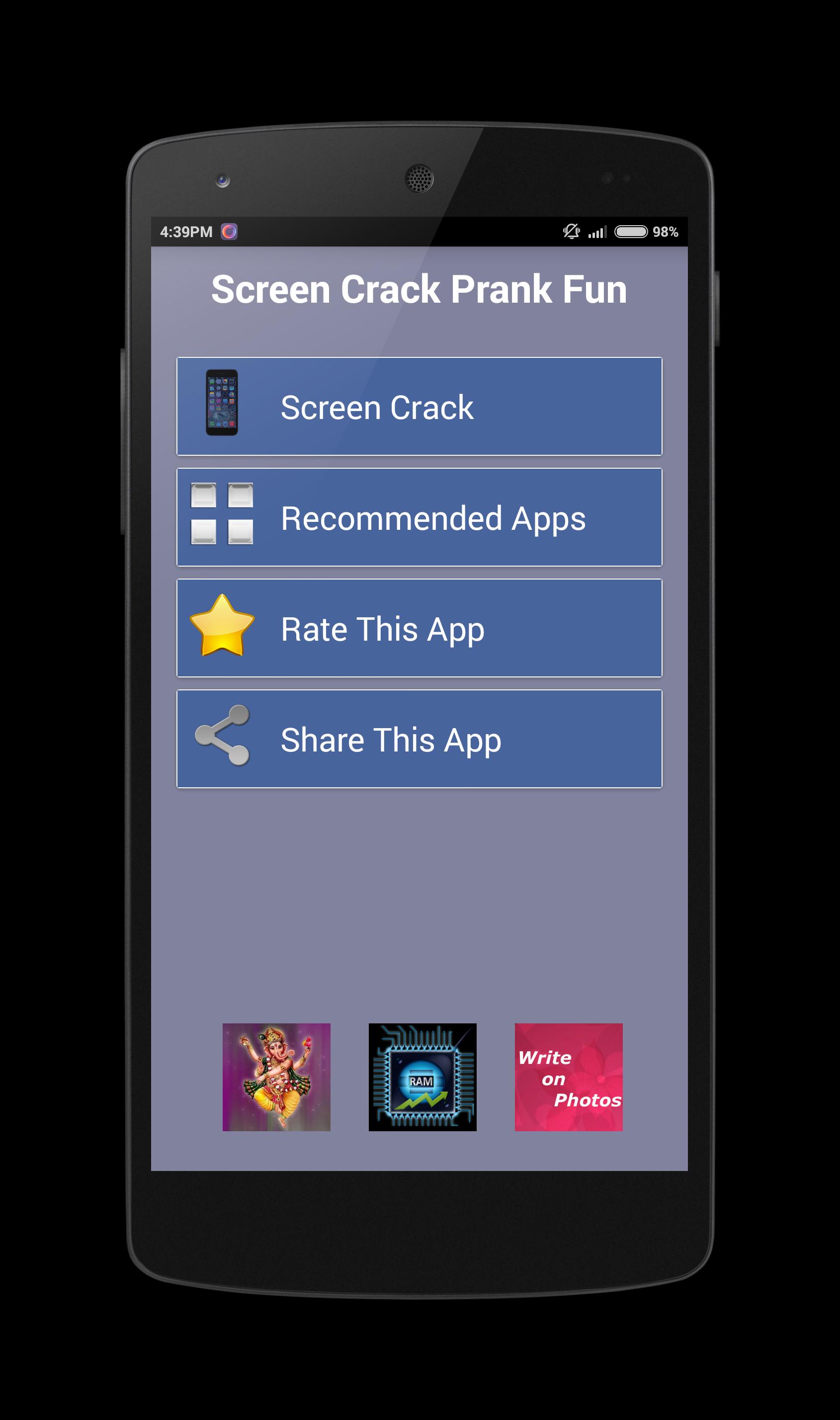 > Make fun of your family and friends with this Screen Crack Prank Fun application. Get them to think you have a cracked screen .