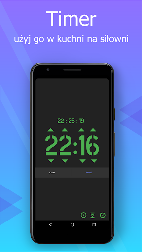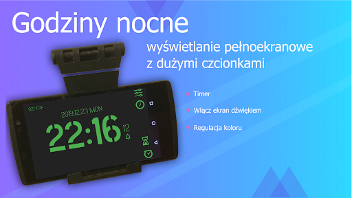 Duże zegary z dużymi czcionkami i kontrolą jasności.