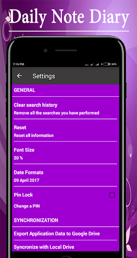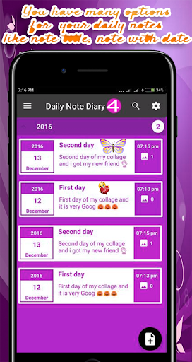 Build from the ground up to be simple and user friendly, the user interface is designed to allow you to enter new notes quickly and easily. With this Diary you can write all your private notes and secure them with a pin code or password.