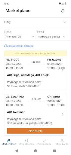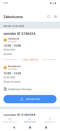 Aplikacja sennder zapewnia przewoźnikom narzędzia do łatwego wyszukiwania, licytowania i przyjmowania przesyłek, przeglądania szczegółów załadunku i rozładunków oraz zarządzania dokumentacją.