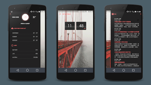 - Informacje dynamiczne (bateria, czas, status sieci, pogoda ...)