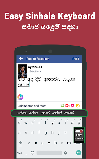 - Zbuduj klawiaturę sinhalską podaną w samej aplikacji. Możesz bezpośrednio wpisać Sinhala za pomocą tej klawiatury. Nie musisz pobierać żadnej aplikacji klawiatury Sinhalse z sklepu zabaw.