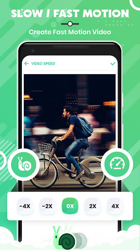 This fast-motion and slow-motion video editor application slows down video speed and speed up video, making video run faster. Let's explore the great features in our fast motion video and slow motion video and You can create very interesting effects buy speeding up or slowing down your video recording. You can adjust the recording speed of the camera while you are shooting the video.