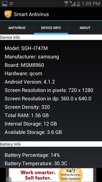 ☆ Smart Android Antivirus provides device information and battery details.