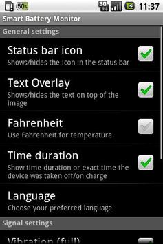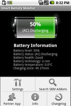 Smart Battery Monitor is a free Android application that displays the battery details. It shows the battery status expressed as a percentage on the status bar (optional).