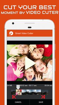 With Smart Video Cutter and Trimmer Just choose your favorite video clips from your Gallery or Albums - then let Smart Video Cutter work its magic in seconds.Smart Video Cutter and Trimmer works very fast. It has beautiful design and very easy to use. Video Editing has never been this fast. Trim video clips to capture the perfect moment.
