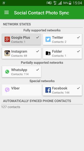 Synchronizuj kontakty telefoniczne ze zdjęciami o wysokiej rozdzielczości z sieci społecznościowych, a częściowo nawet z aplikacji socjalnych:
