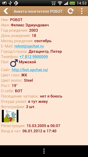 - Automatyczne pobieranie listy Kontakt Czat online - pełne rozmowy na urządzeniu mobilnym, uśmiecha się - Zarządzaj zdjęciami, Usuń i dodawanie - Wyświetl informacje o użytkowniku, pobierz zdjęcia w kwestionariuszu